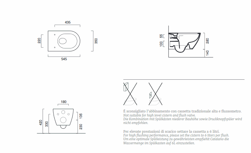 CATALANO SFERA ECO Miska WC podwieszana 54,5x35 cm RIMLESS bez kołnierza biała, 0511440001