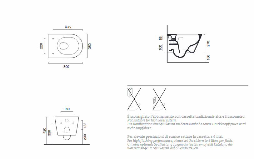 CATALANO ZERO 50 NEW Miska podwieszana bezrantowa, 0111500001