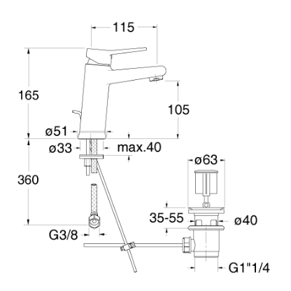 • Jednouchwytowa bateria umywalkowa duża