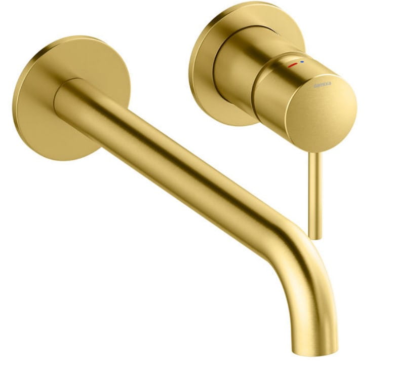 DAMIXA MERKUR Zestaw elementów zewnętrznych z wylewką podtynkowej baterii umywalkowej 25 cm szczotkowany mosiądz PVD, 1461679