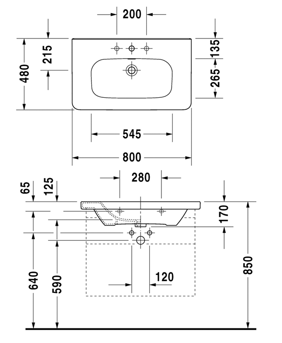 DURAVIT DURASTYLE Umywalka meblowa 80x48 cm z przelewem z jednym otworem na baterię biała, 2320800000