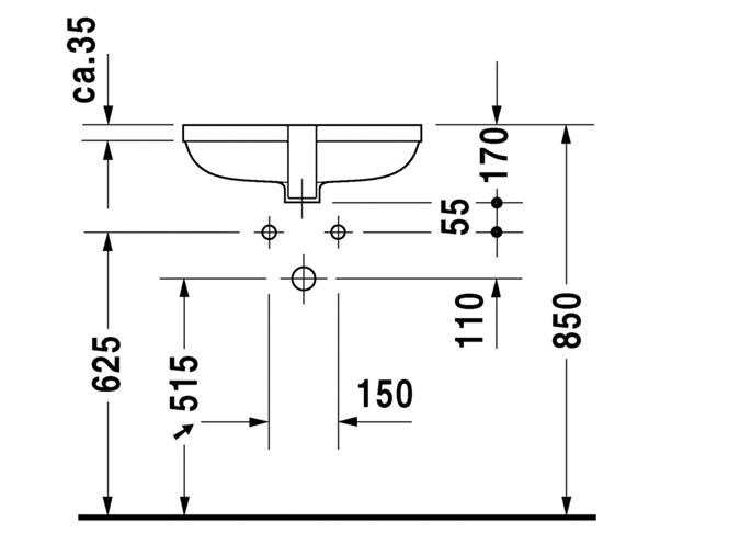 DURAVIT HAPPY D.2 Umywalka podblatowa 48x34,5 cm bez otworu na baterię z przelewem biała, 0457480000