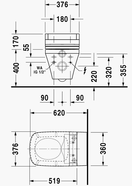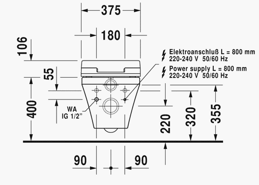 DURAVIT SENSOWASH DURASTYL Miska toaletowa wisząca, 2537590000