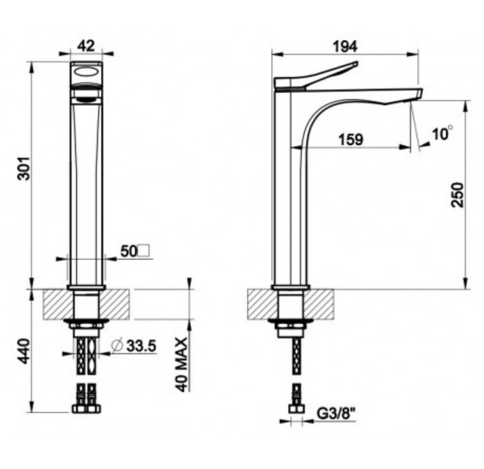 GESSI RILIEVO Bateria umywalkowa wysoka bez korka automatycznego, chrom 59010.031