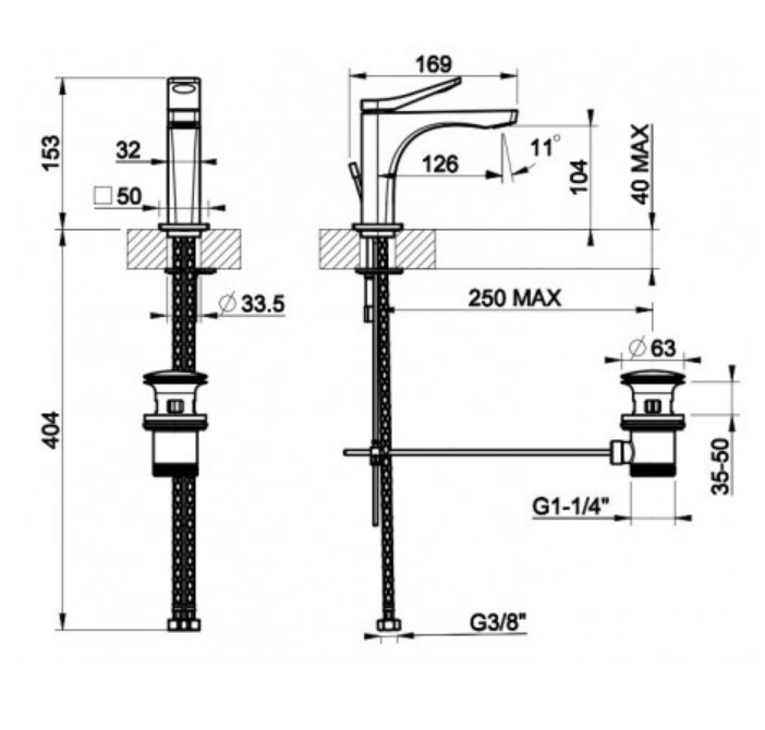 GESSI RILIEVO Bateria umywalkowa z korkiem automatycznym, chrom 59001.031
