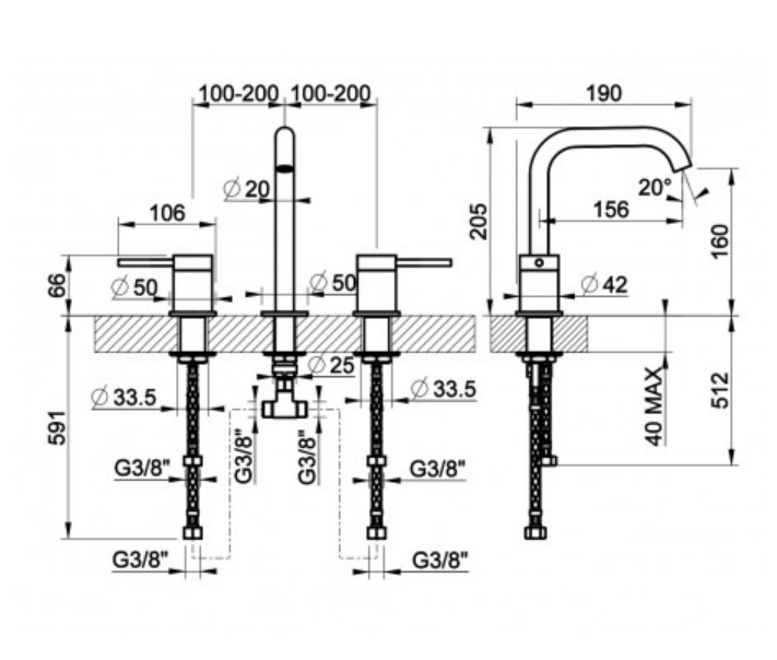 GESSI TRAME Bateria umywalkowa trzyotworowa, bez korka automatycznego, stal szczotkowana 54312.239