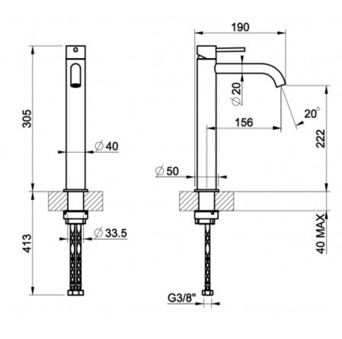 GESSI TRAME Bateria umywalkowa wysoka z długą wylewką, bez korka automatycznego, stal szczotkowana 54306.239