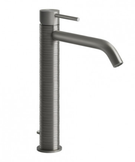GESSI TRAME Bateria umywalkowa wysoka z długą wylewką, korek automatyczny, stal szczotkowana 54303.239