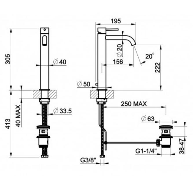 • Zasięg wylewki: 156mm