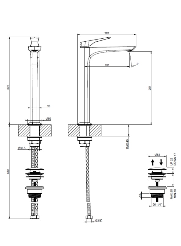 GESSI VENTAGLIO Bateria umywalkowa wysoka z korkiem klik-klak chrom, 72053.031