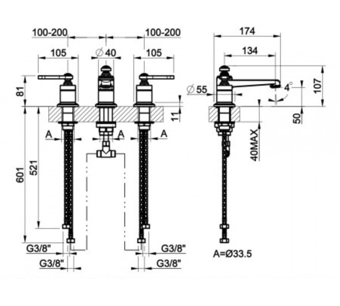 GESSI VENTI20 Trzyotworowa bateria umywalkowa 10,7 cm bez korka automatycznego, chrom 65013.031