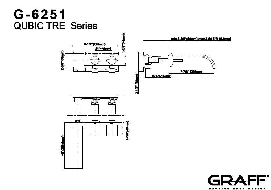 GRAFF SADE Bateria ścienna umywalkowa z wylewką 20 cm chrom, E-1830-C14W-PC