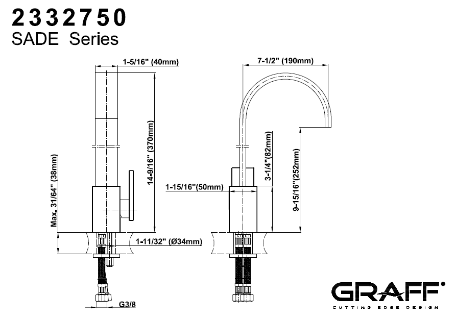 GRAFF SADE Jednouchwytowa bateria umywalkowa - wysoka chrom, E-1805-LM36-PC