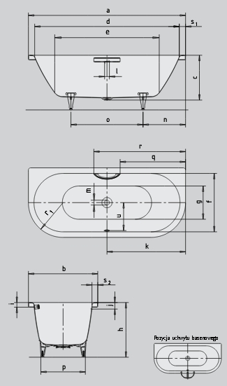 • Kąpiel we dwoje: dwa identyczne podparcia pleców i odpływ pośrodku.