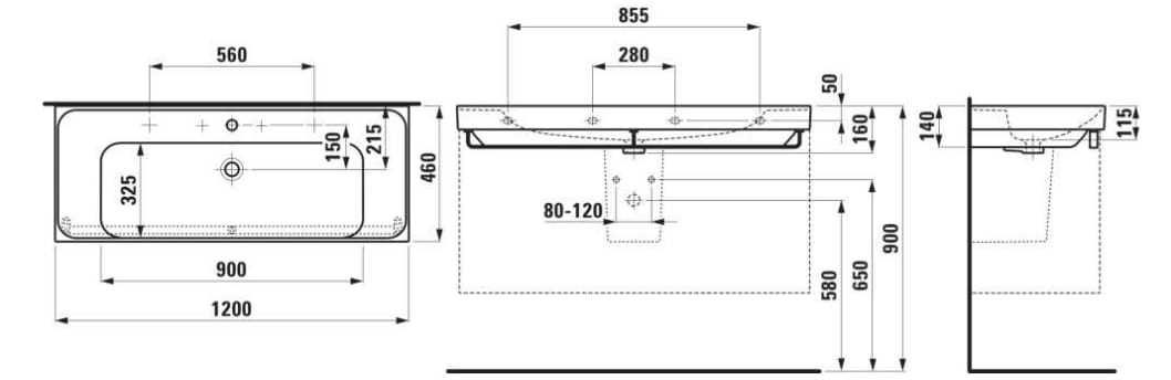 LAUFEN MEDA Umywalka ścienna 120x46 cm biała, H8141110001091