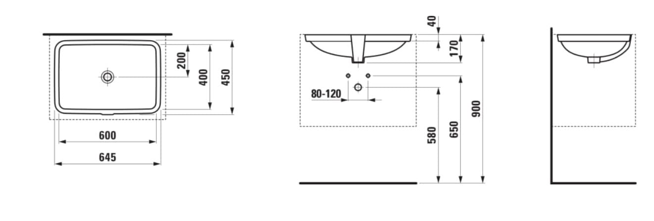 LAUFEN PRO S Umywalka podblatowa 62,5 x45 cm bez otworu na baterię wersja nieszlifowana, H8119650001091