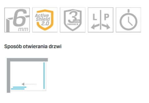 • Kabiny prysznicowe wyposażone są w bezpieczne, hartowane szyby o grubości 6mm, z powłoką ochronną Active Shield 2.0.
