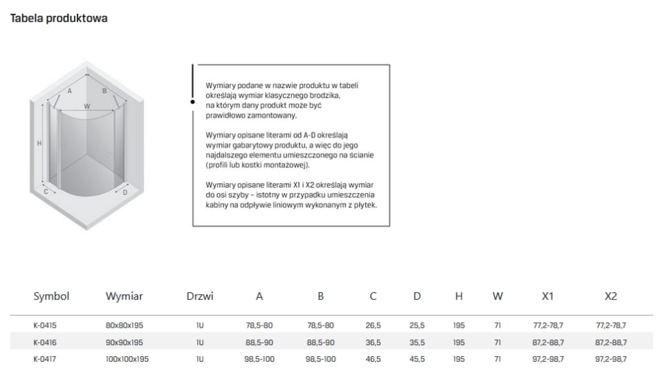 - Produkt może być instalowany z brodzikiem lub bez brodzika