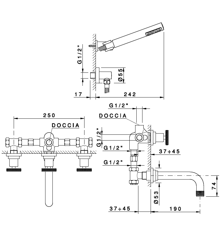 NICOLAZZI ARENA Zestaw wannowy ze słuchawką prysznicową oraz wylewką ścienną, chrom 3303EXTCR44