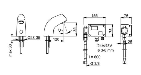 ORAS ELECTRA Bateria umywalkowa bez mieszacza 24/48 V Bluetooth chrom 6110Z