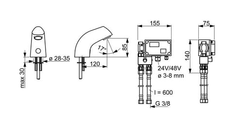 ORAS ELECTRA Bateria umywalkowa z mieszaczem 24/48 V Bluetooth chrom 6114Z