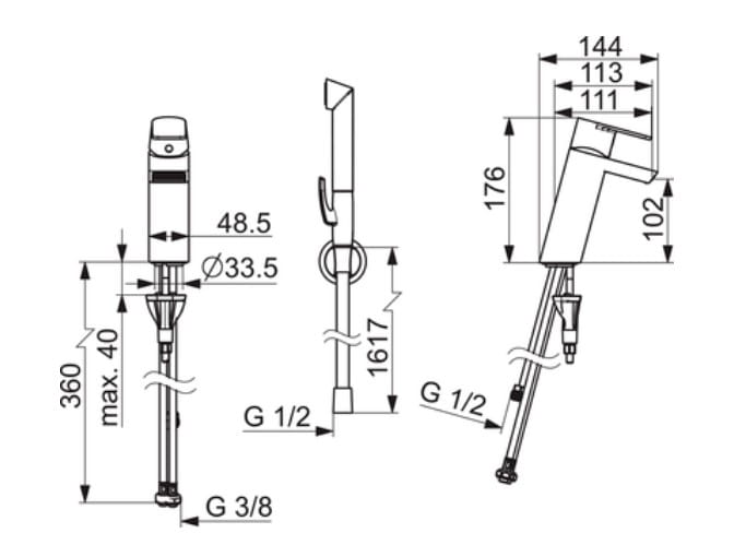 • Bateria umywalkowa z rączką natrysku Bidetta