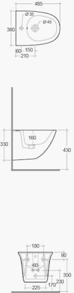 • Bidet podwieszany 48 x 38 cm biały połysk