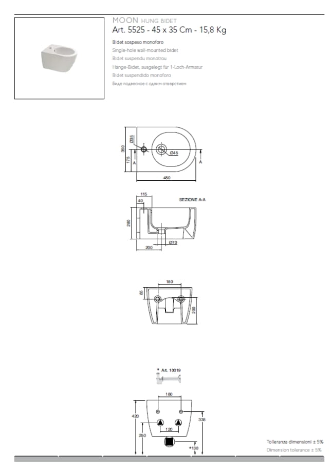 SCARABEO MOON Bidet podwieszany 54x35 biały, 5525