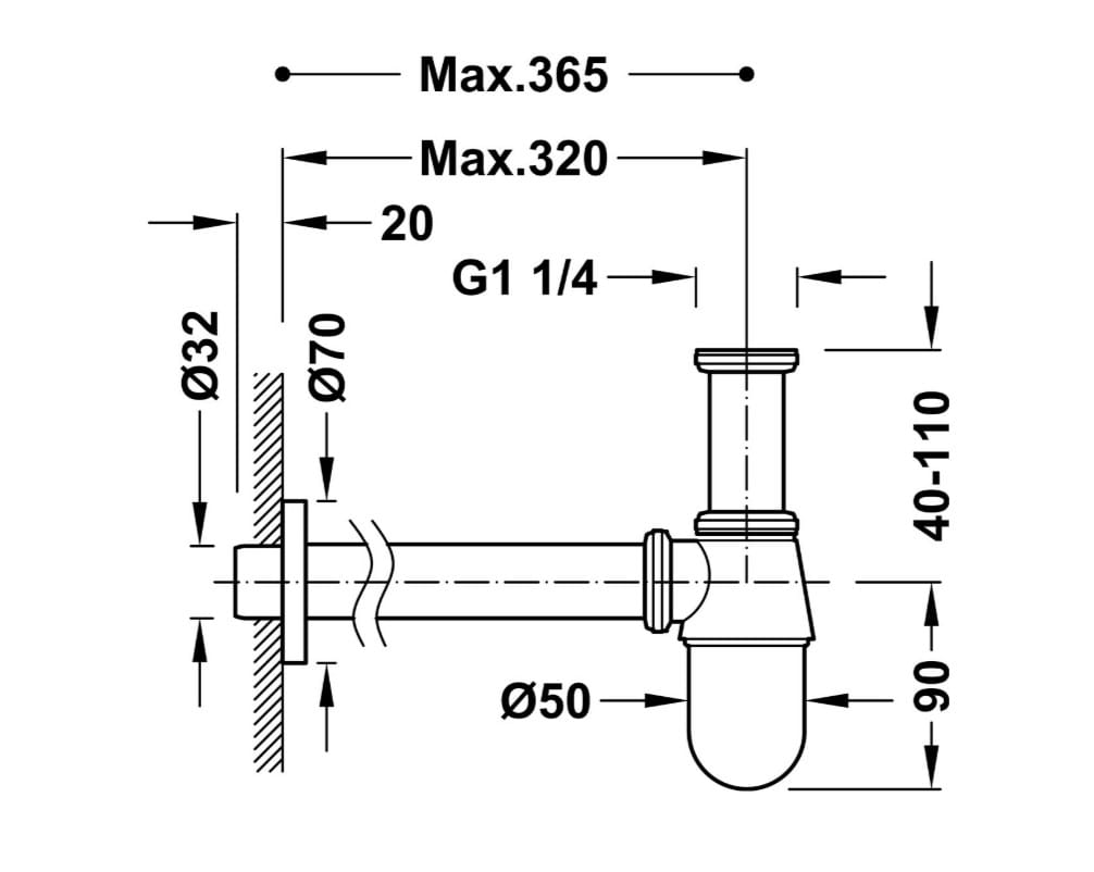 • Podłączenie do umywalki: 1¼"