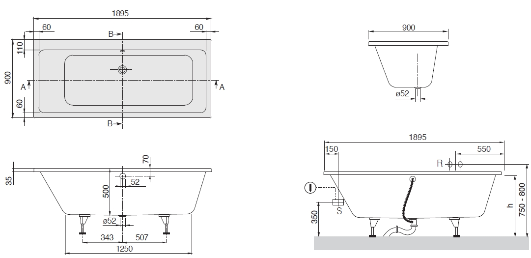 Subway Wanna prostokątna 1900 x 900 mm, Weiss Alpin Kolor: White Wysokiej jakości wanna o nowoczesnym i prostym wzornictwie Wanny o klasycznym kształcie prostokąta Wanny wolnostojące lub do zabudowy z centralnie umieszczonym odpływem Wykonanie z przyjaznego dla skóry i ciepłego akrylu sanitarnego Opcjonalna możliwość łączenia z systemami hydromasażu Villeroy & Boch Opcjonalnie: Zintegrowany odpływ i przelew Multiplex Trio Opcjonalna obudowa Profibox 2.0 do wanien p,